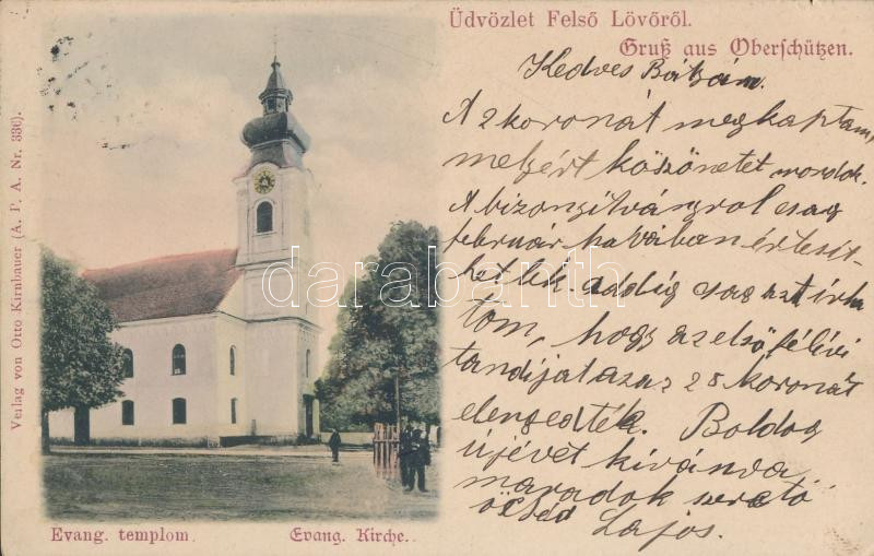 Leírás: Felsőlövő, Oberschützen; Evangélikus templom / Evangelist church (small tear)