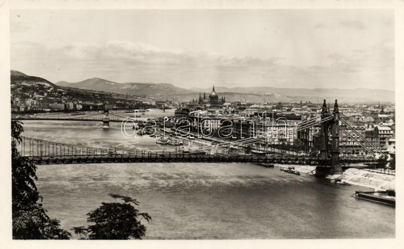 Leírás: Budapest Erzsébet híd és Lánchíd