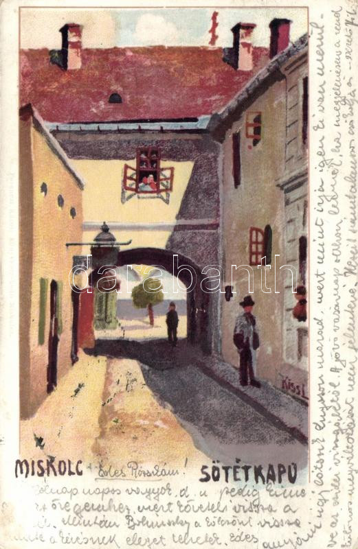 Leírás: Miskolc, Sötétkapu; Ferenczi Károly könyvkereskedő kiadása s: Kiss L.