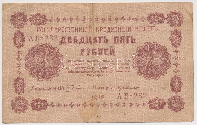Oroszország / Szocialista Szövetségi Szovjet Köztársaság 1918. 25R T:I... https://www.darabanth.com/hu/200-Gyorsarveres/200.0/Numizmatika/Kulfoldi-bankjegyek~400011/Oroszorszag-Szocialista-Szovetsegi-Szovjet-Koztarsasag-1918-25R-TIII-Russia-Russian-Soc~II786907