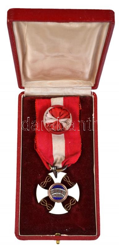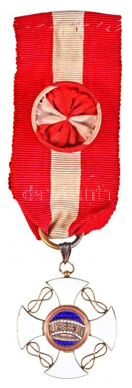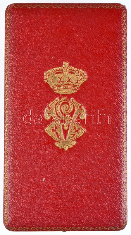 Olaszország 1868- "Olasz Korona Rend Tisztikeresztje" zománcozott arany és aranyozott bronz kitüntetés eredeti mellszalagon és adományozói dísztokban! T:1-