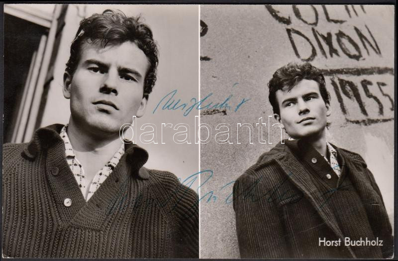 Leírás: Horst Buchholz (1933-2003) német színész és saját kezű aláírása az őt ábrázoló fotóképeslapon /