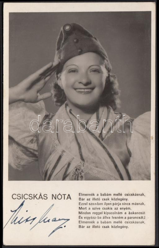 Leírás: Kiss Manyi (1911-1971) Jászai Mari-díjas színésznő saját kezű aláírása fotóképeslapon