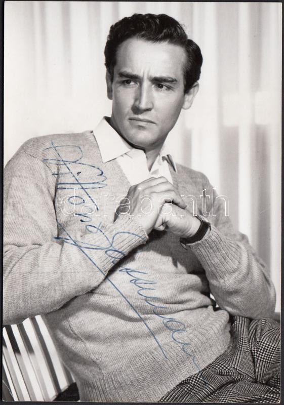 Leírás: Vittorio Gassmann (1922-2000) olasz színész és filmrendező saját kezű aláírása az őt ábrázoló fotón /