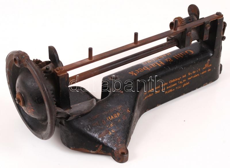 cca 1920-1930 Guhl&Harbeck Hamburg márkájú asztalra szerelhető ceruzah... https://www.darabanth.com/hu/201-Gyorsarveres/201.0/Festmeny-mutargy-papirregiseg-egyeb/Bolhapiac~200019/cca-1920-1930-GuhlHarbeck-Hamburg-markaju-asztalra-szerelheto-ceruzahegyezo-gep-hianyos-ne~II790886