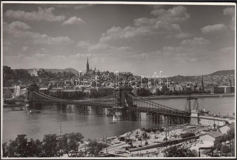 1947-1948 A Lánchíd újjáépítése, egy helyen kissé szakadt, 17x12 cm https://www.darabanth.com/hu/201-Gyorsarveres/201.0/Festmeny-mutargy-papirregiseg-egyeb/Foto~200032/1947-1948-A-Lanchid-ujjaepitese-egy-helyen-kisse-szakadt-17x12-cm~II798017