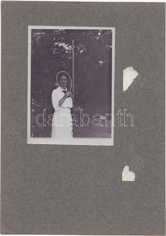 Leírás: cca 1900-1910 Dagonyázó konda albumlapra felragasztva, a másik oldalán hölgy teniszütővel, 12x17 és 11x8 cm