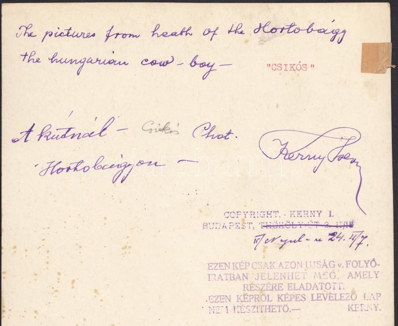 cca 1920-1930 Kerny István (1879-1963): Hortobágyi csikósok a kútnál, ... https://www.darabanth.com/hu/201-Gyorsarveres/201.0/Festmeny-mutargy-papirregiseg-egyeb/Foto~200032/cca-1920-1930-Kerny-Istvan-1879-1963-Hortobagyi-csikosok-a-kutnal-vintage-foto-pecsettel~II792319