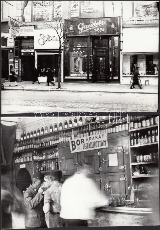 Leírás: cca 1930-1940 Különféle budapesti üzletek külső és belső képe, eredeti negatívokról készült későbbi nagyítások, 4 db, 13x18 cm