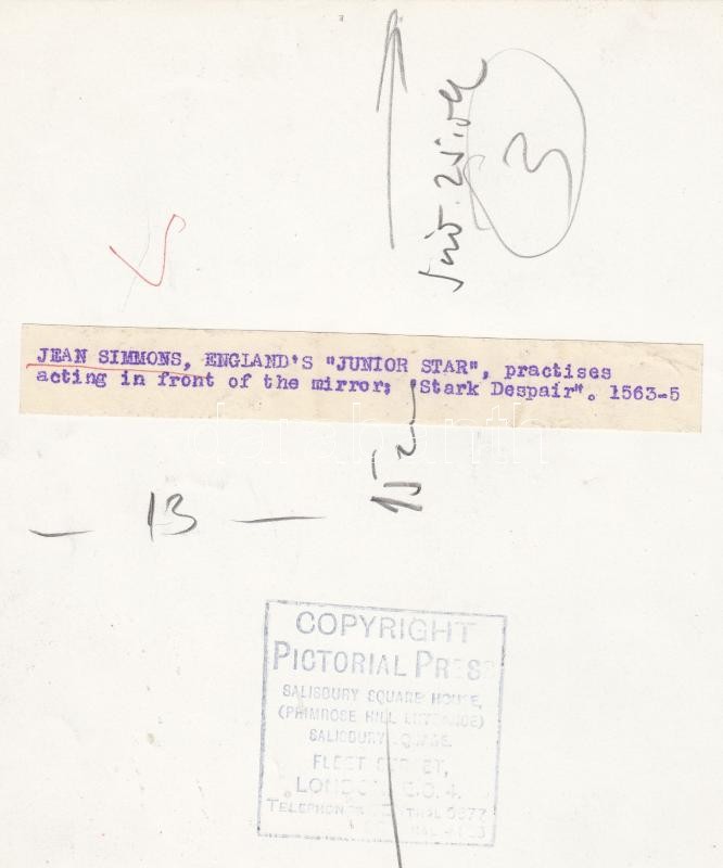 cca 1950-1960 Jean Simmons angol színésznő rémületben, filmfotó, felir... https://www.darabanth.com/hu/201-Gyorsarveres/201.0/Festmeny-mutargy-papirregiseg-egyeb/Foto~200032/cca-1950-1960-Jean-Simmons-angol-szineszno-remuletben-filmfoto-feliratozva-21x20-cm~II792977