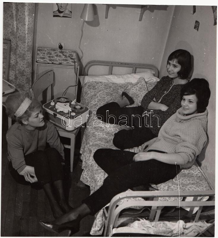 Leírás: cca 1960-1970 Kotnyek Antal (1921-1990): Nőcis buli a koleszban, jelzetlen szociofotó, a szerző hagyatékából, 20x18 cm