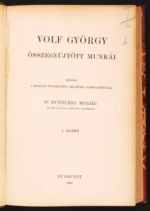 Wolf György összegyűjtött munkái I. (Magyar nyelvtörténet) Bp., 1907. ... https://www.darabanth.com/hu/201-Gyorsarveres/201.0/Festmeny-mutargy-papirregiseg-egyeb/Konyvek-Egyeb-ritkasagok~200037/Wolf-Gyorgy-osszegyujtott-munkai-I-Magyar-nyelvtortenet-Bp-1907-MTA-Franklin-Korabeli~II794528