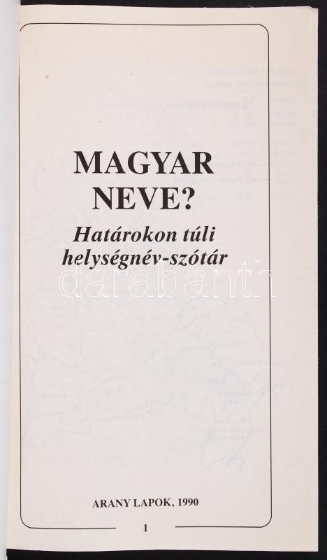 Sebők László(szerk.): Magyar neve? Határokon túli helységnév-szótár. B... https://www.darabanth.com/hu/201-Gyorsarveres/201.0/Festmeny-mutargy-papirregiseg-egyeb/Konyvek-Utazas-varosok~200040/Sebok-Laszloszerk-Magyar-neve-Hatarokon-tuli-helysegnev-szotar-Bp-1990-Arany-Lapok~II798403