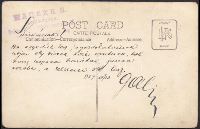 Leírás: 1927 Katonatiszt kitüntetésekkel, fotóképeslap, hátoldalán üzenettel, 9x14 cm
