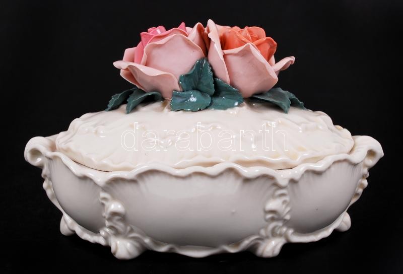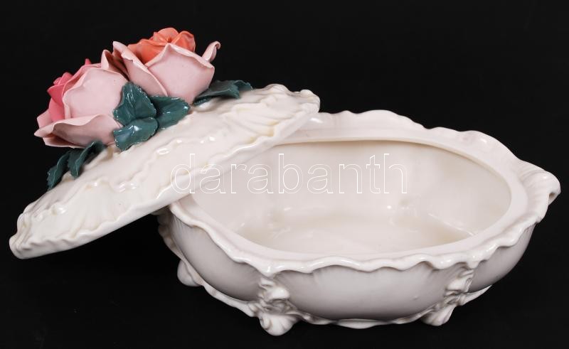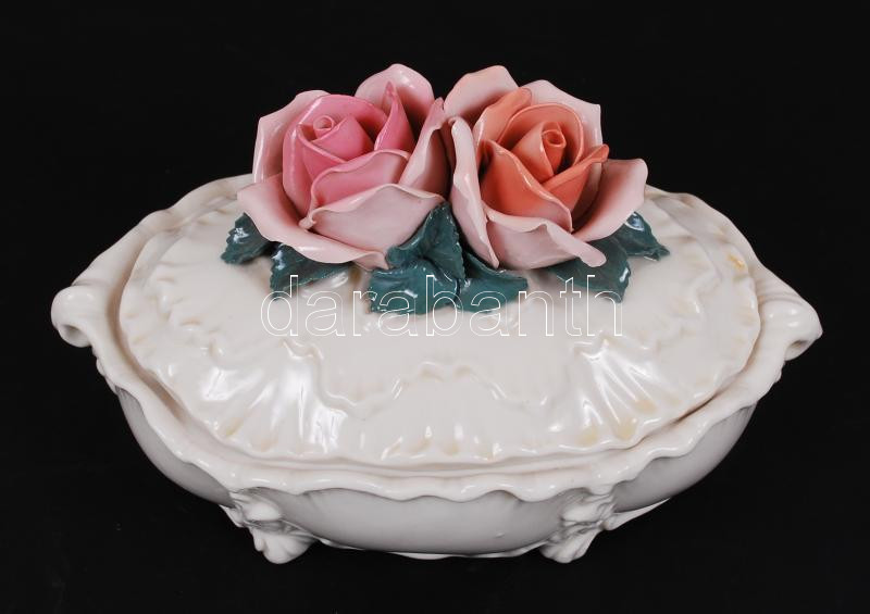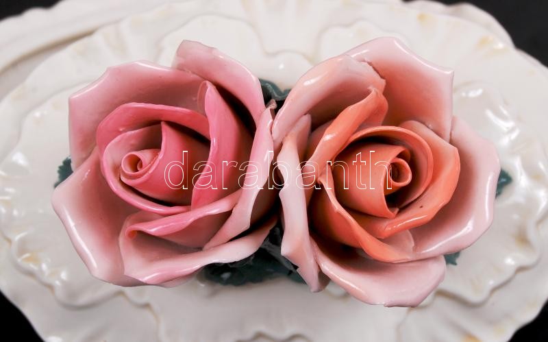 Leírás: Ens rózsás bonbonier, jelzett, hibátlan, kézzel festett/ Handpainted ENS chinaware bonbonier, 11×20 cm