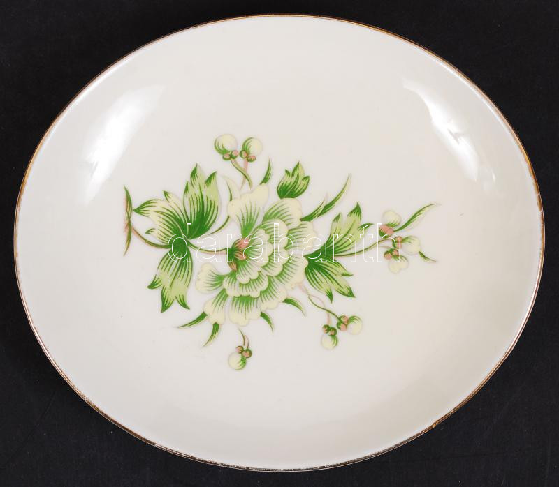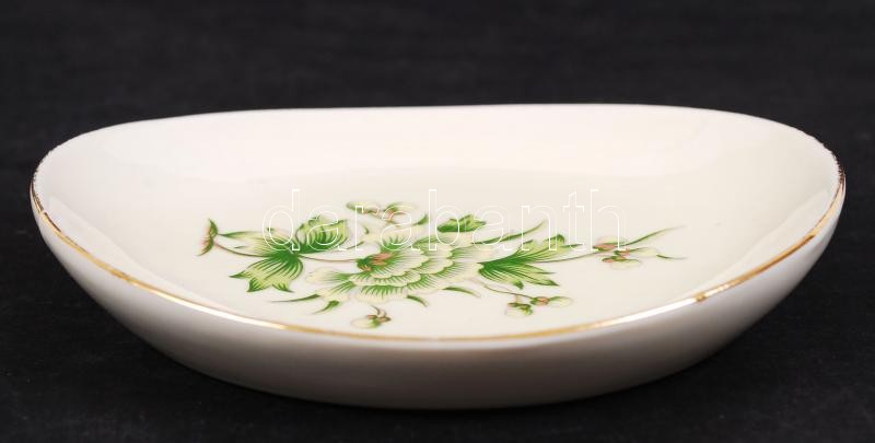 Leírás: Hollóházi zöld virágos porcelán tálka aranyozott széllel, jelzett, 12x10 cm