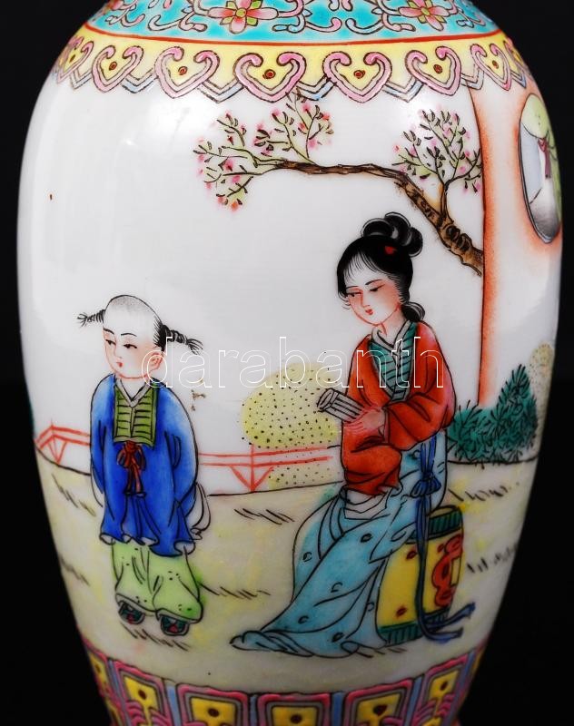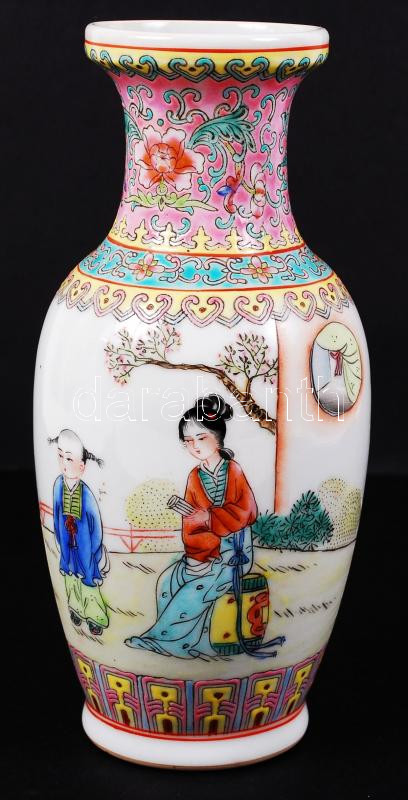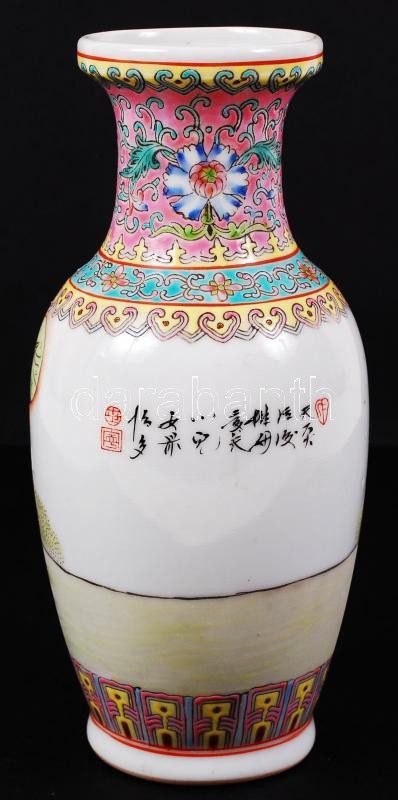 Leírás: Kínai kézzel festett porcelán váza, hibátlan, jelzett, m: 21 cm