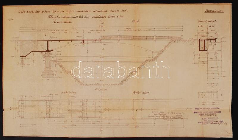 Leírás: 1915 Bp., A győri Teleszky úti híd terve, Zielinkski Szilárd mérnök, műegyetemi tanár pecsétjével