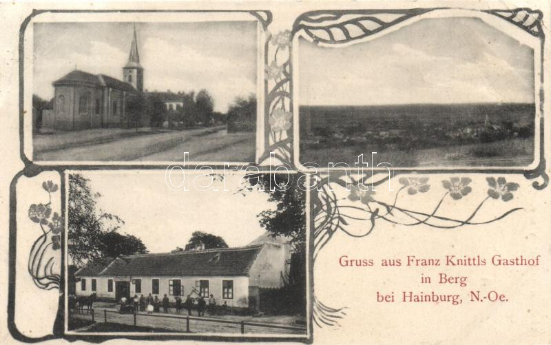 Leírás: Hainburg; Franz Knittls Gasthhof in Berg bei Hainburg /inn, Art Nouveau floral (EB)