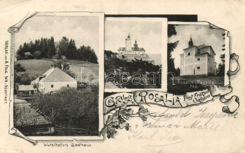 Leírás: Fraknó-Rosalia, Forchtenstein; Wurzlhofer's hotel, castle (EK)