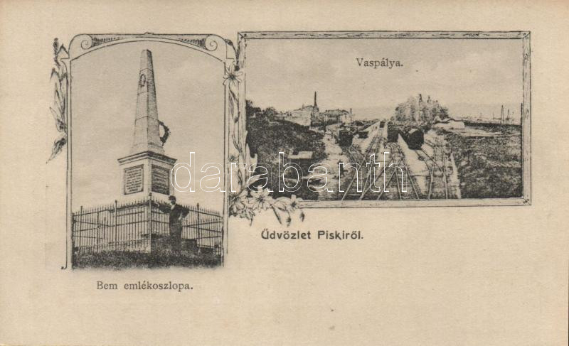 Piski, Bem emlékoszlop, vasúti pálya; kiadja Gyulai József / memorial ... https://www.darabanth.com/hu/201-Gyorsarveres/201.0/Kepeslapok/Erdely~900007/Piski-Bem-emlekoszlop-vasuti-palya-kiadja-Gyulai-Jozsef-memorial-place-railroad-floral~II798336