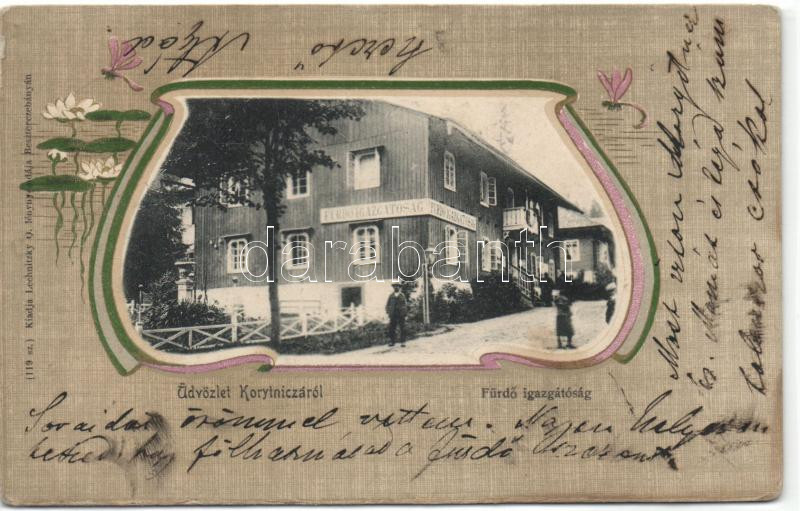 Leírás: Korytnica fürdő igazgatóság / spa directorate, Art Nouveau, floral, litho (fl)