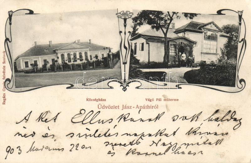 Jászapáti, községháza, Vágó Pál üzlete, Art Nouveau https://www.darabanth.com/hu/201-Gyorsarveres/201.0/Kepeslapok/Magyarorszag~900006/Jaszapati-kozseghaza-Vago-Pal-uzlete-Art-Nouveau~II797787