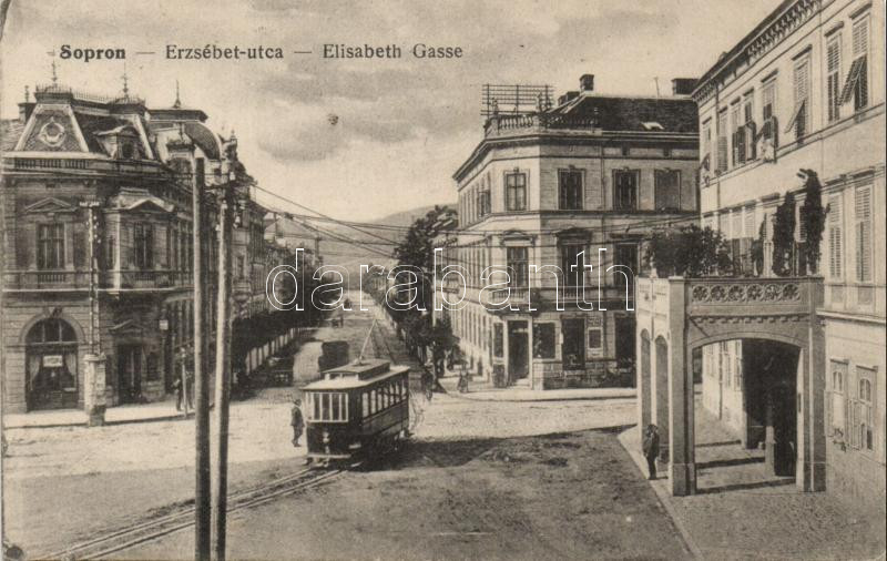 Sopron, Erzsébet utca, villamos https://www.darabanth.com/hu/201-Gyorsarveres/201.0/Kepeslapok/Magyarorszag~900006/Sopron-Erzsebet-utca-villamos~II797022