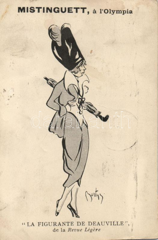 Mistinguett 'La Figurante de Deauville' s: Bertus (?) https://www.darabanth.com/hu/201-Gyorsarveres/201.0/Kepeslapok/Szinesz~900084/Mistinguett-La-Figurante-de-Deauville-s-Bertus-~II790998