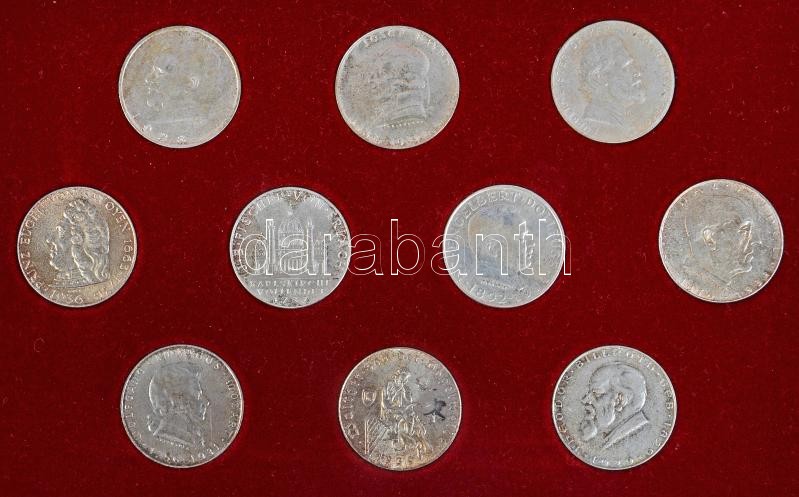 Austria 1928-1937. 2 Schilling Ag (10x) all different commemorative coins in original case with certificate C:UNC,XF