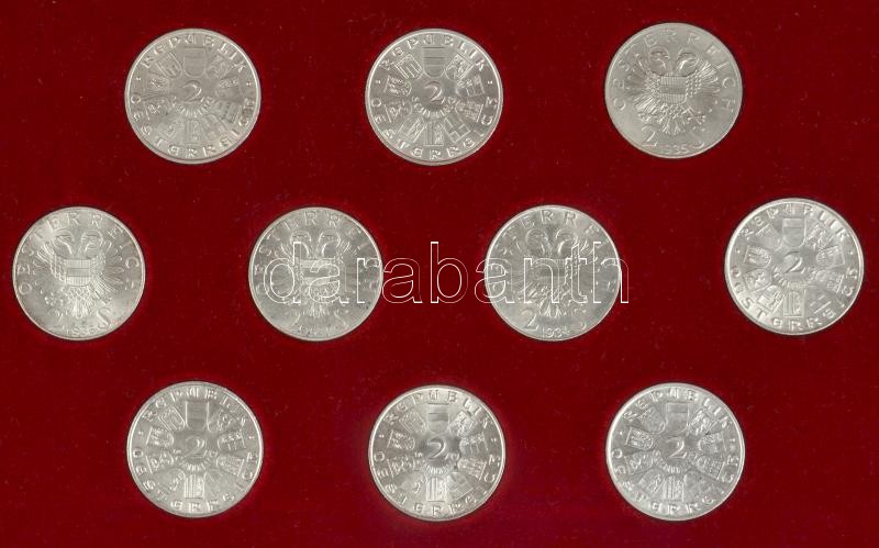 Ausztria 1928-1937. 2Sch Ag (10x) mind klf emlékveret tanúsítványokkal, eredeti dísztokban T:1,2