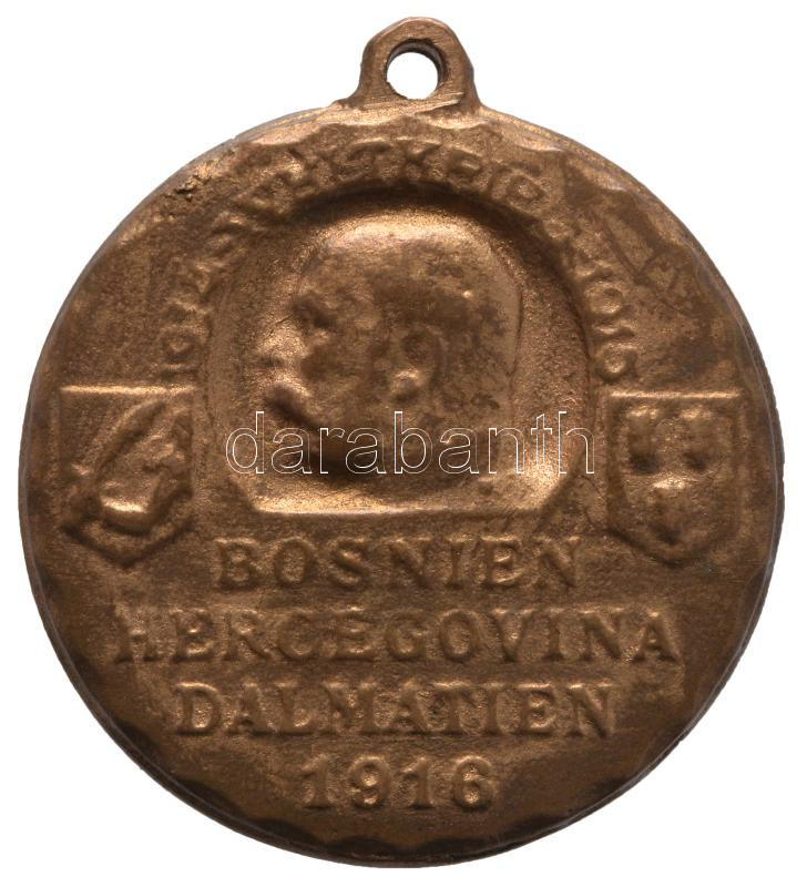 Austro-Hungarian Monarchy 1916. "BOSNIEN HERCEGOVINA DALMATIEN 1916" gilt bronze commemorative medal (30mm) C:XF