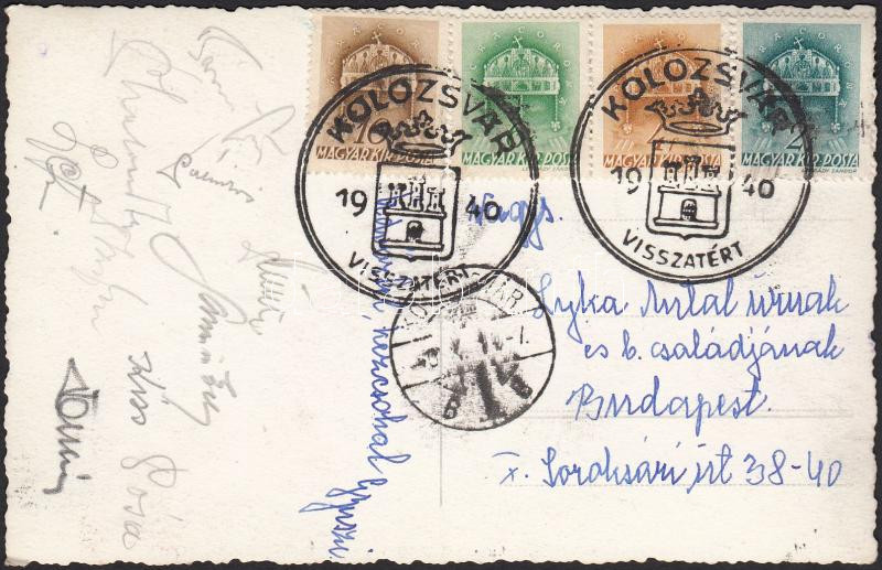 Leírás: 1940 A Ferencvárosi (FTC) futball csapatKolozsvárrról hazaküldött képeslap a tagok saját kezű aláírásával