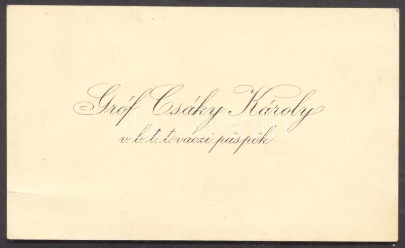 cca 1880 gr. Csáky Károly váci püspök aláírt névjegykártyája / signed ... https://www.darabanth.com/hu/202-Gyorsarveres/202.0/Festmeny-mutargy-papirregiseg-egyeb/Alairas~200031/cca-1880-gr-Csaky-Karoly-vaci-puspok-alairt-nevjegykartyaja-signed-visit-card-of-Vac-bi~II542903