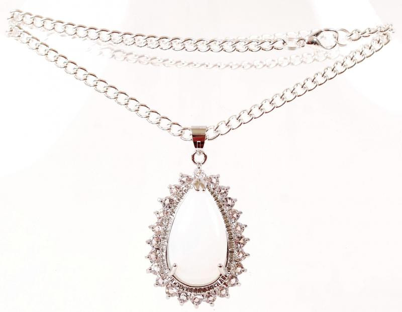 Leírás: Csepp alakú függő szintetikus kővel láncon /