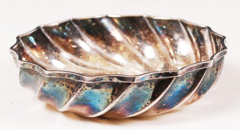 Leírás: Ezüstözött alpakka kis tálka, jelzett, d:12 cm