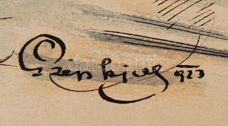 Leírás: 1923 Szép Lajos (1886-?): Motorkerékpáros. Akvarell, papír, jelzett, 42x31 cm