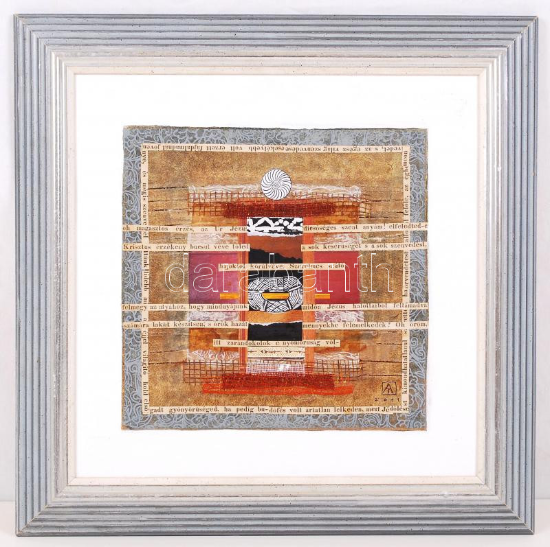 Leírás: Ajtai Tamás (1952-): Oltárvilág. Vegyes technika, karton, jelzett, újszerű keretben 21×21 cm