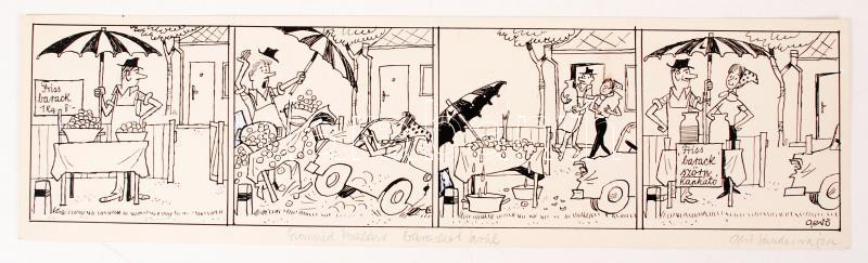 Gerő Sándor (1904-1977): Szomszéd Balázs barackot árul. Papír, tus, je... https://www.darabanth.com/hu/202-Gyorsarveres/202.0/Festmeny-mutargy-papirregiseg-egyeb/Festmenyek-es-grafikak~200003/Gero-Sandor-1904-1977-Szomszed-Balazs-barackot-arul-Papir-tus-jelzett-33x9-cm~II803946