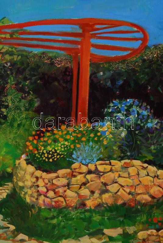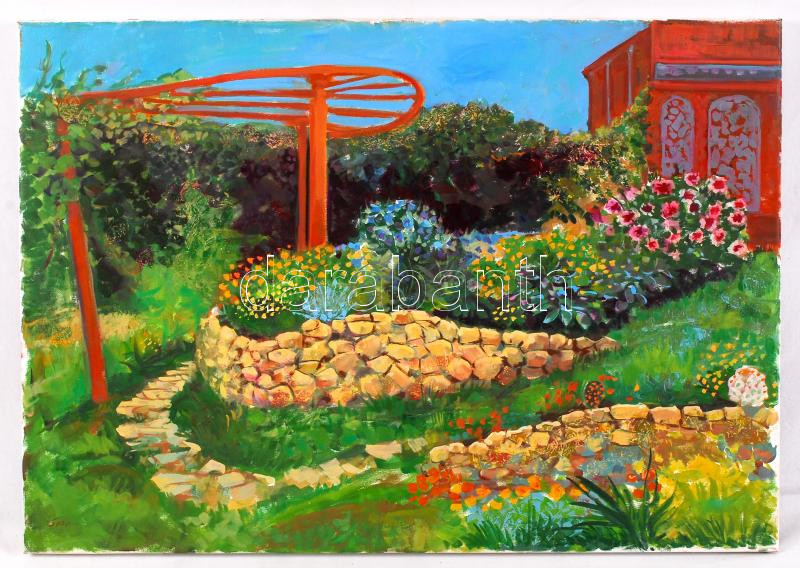 Leírás: Győri Zsolt (1968-): Kert. Olaj, vászon, jelzett, 50×70 cm