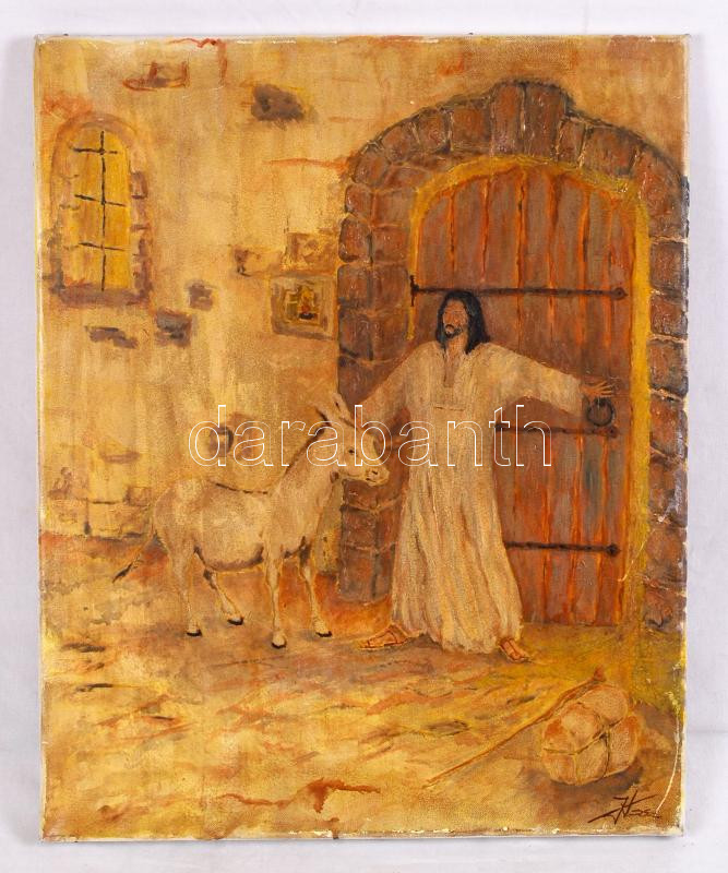 Hasz jelzéssel: Jézus és a szamár. Olaj, vászon, 50×40 cm https://www.darabanth.com/hu/202-Gyorsarveres/202.0/Festmeny-mutargy-papirregiseg-egyeb/Festmenyek-es-grafikak~200003/Hasz-jelzessel-Jezus-es-a-szamar-Olaj-vaszon-50C39740-cm~II782319