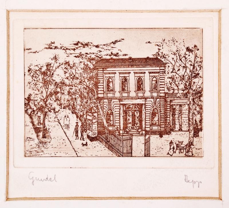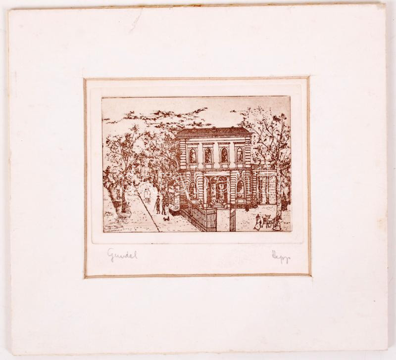 Leírás: Hopp? jelzéssel: Gundel. Rézkarc, papír, paszpartuban 14x13 cm