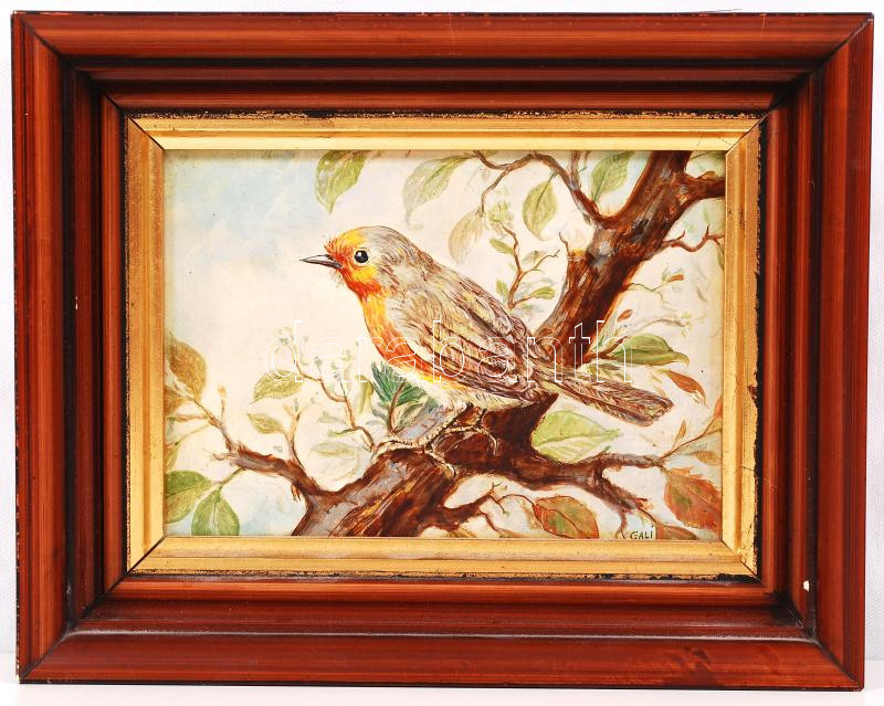 Leírás: Jelzés nélkül: Vörösbegy. Olaj, farost, keretben, 13×18 cm