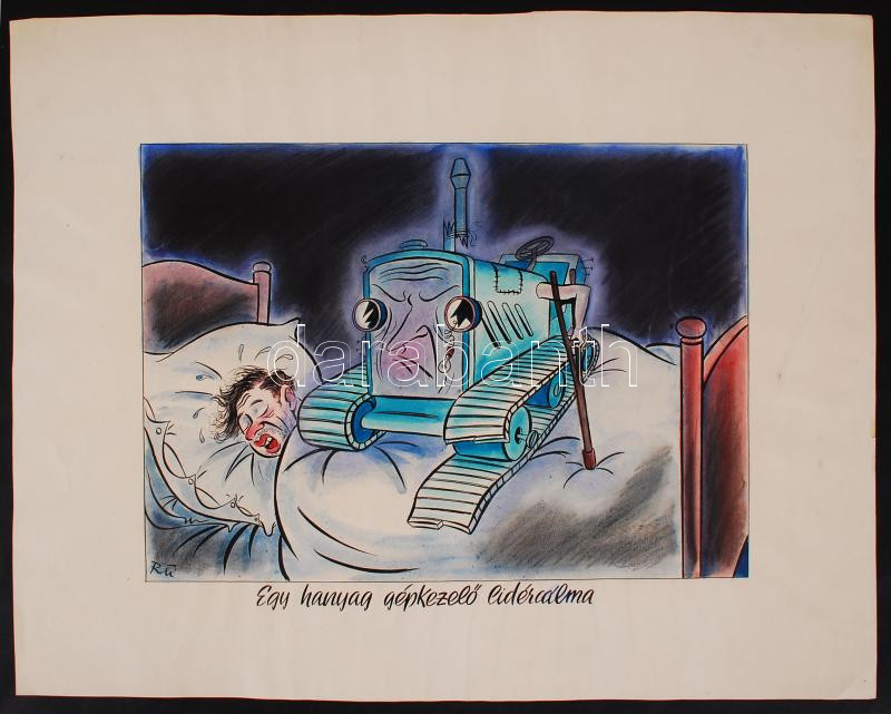 Ruszkay György (1924-1998): Egy hanyag gépkezelő lidércálma. Papír, ve... https://www.darabanth.com/hu/202-Gyorsarveres/202.0/Festmeny-mutargy-papirregiseg-egyeb/Festmenyek-es-grafikak~200003/Ruszkay-Gyorgy-1924-1998-Egy-hanyag-gepkezelo-lidercalma-Papir-vegyes-technika-jelzett-~II804023