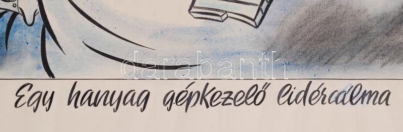 Leírás: Ruszkay György (1924-1998): Egy hanyag gépkezelő lidércálma. Papír, vegyes technika, jelzett, 50x40cm