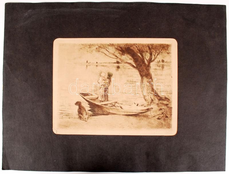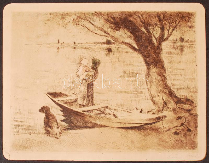 Leírás: Szőnyi István (1894-1960): Először a tó partján. Rézkarc, papír, jelzett, 23×30 cm
