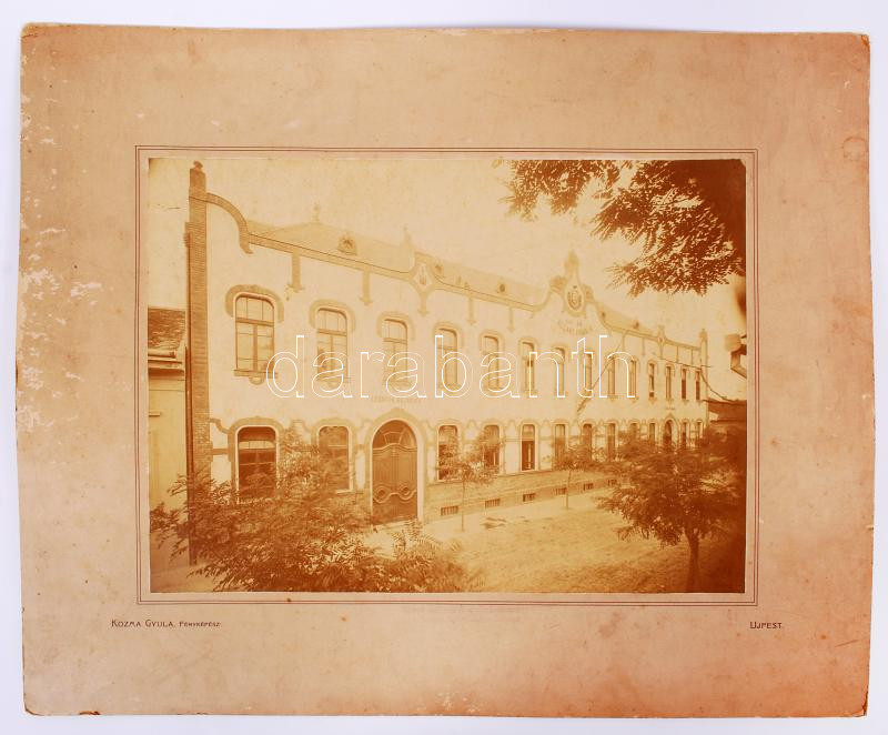 Leírás: 1918 Budapest IV. az ujpesti magyar királyi állami iskola épülete a Kossuth címerrel a homlokzaton. Nagyméretű fotó Kozma Gyula fényképésztől 50x40 cm