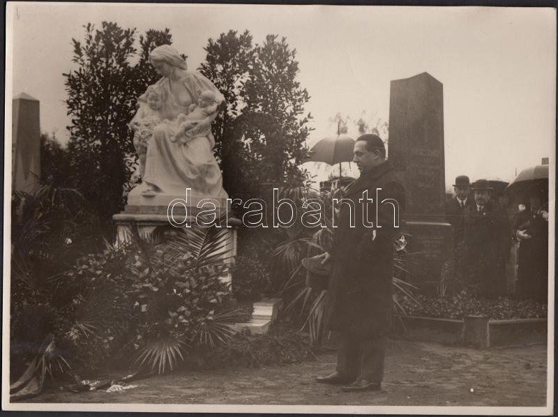1932 Heim Pál síremléke Budapesten a Kerepesi úti temetőben, Vastagh György alkotása; Avatóbeszédet mond prof. Dr. Hainiss Elemér, az I. sz. Gyermekklinika vezetője, feliratozva, 18x24 cm