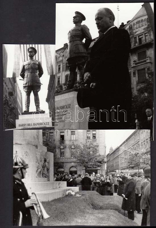 1936 Harry Hill Bandholtz (1864 - 1925) amerikai tábornok, az első világháború után az amerikai katonai misszió parancsnoka volt Magyarországon. Szobrának avatásán készült eredeti felvételek későbbi nagyításokon, 3 db fotó, 7x11 és 13x18 cm-es méretekben