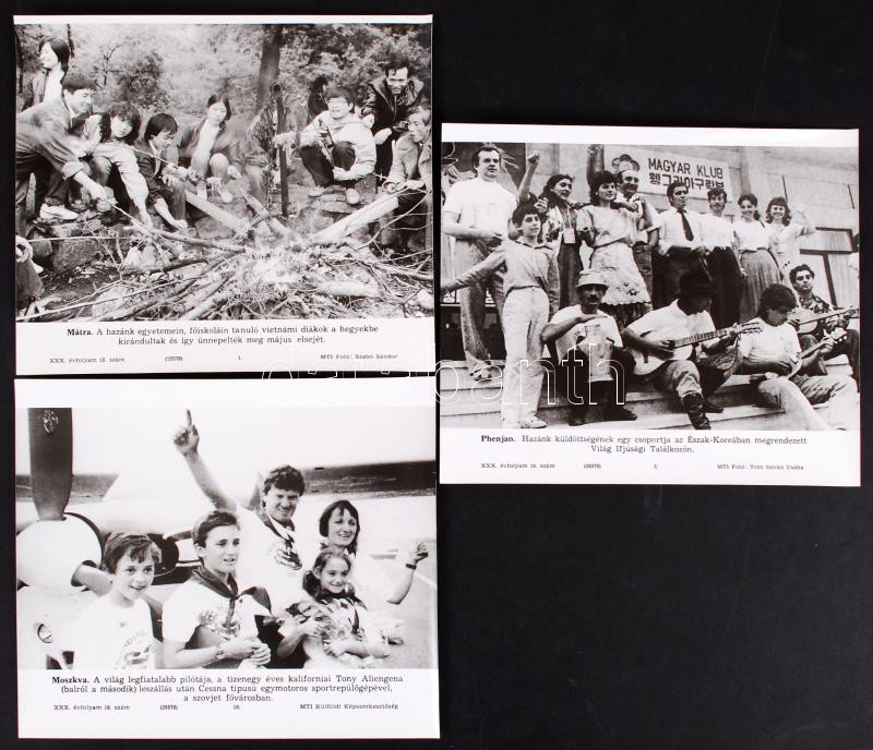 Leírás: 1989 MTI fotók: Vietnámi diákok; A világ legfiatalabb pilótája; Magyar küldöttség Észak-Koreában, 3 db fotó, feliratozott, 24x21 cm